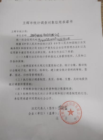 一纸承诺,一份责任。此次承诺书签订活动,不仅强化了统计调查对象的诚信意识和责任担当,更为提升统计数据质量、营造风清气正的统计生态奠定了坚实基础。下一步,卫辉市统计局将持续加强统计信用监管,推动统计信用承诺落地见效,以高质量统计服务高质量发展。